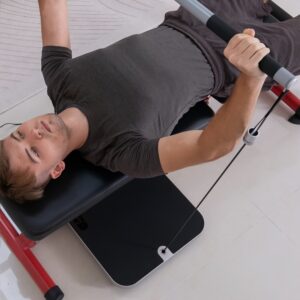 - Utför bänkpressövningar för att stärka bröst och armar. Justera vikten med den AI-styrda teknologin för bästa resultat.