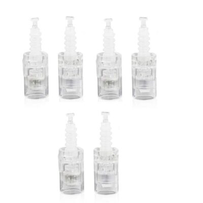 Nålhuvuden för MicroPen. Du kan själv justera nålens djup på maskinen, från 0,25 mm till 2,5 mm. Välj rätt nålar beroende på om du har den röda MicroPen eller vår nya som är silverfärgad.